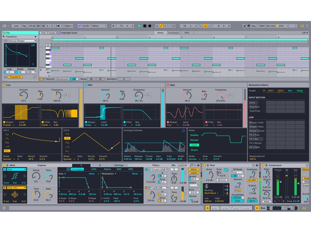 Vytvářejte vše od jemné a přesné masteringové vřelosti až po divokou a nepředvídatelnou degradaci zvuku pomocí Roar, nového efektu saturace a efektů pro práci s barvou. Prozkoumejte nové textury a barvy zvuku s dvojitým zvukovým enginem Meld. Nebo získejte ještě více expresivity s nejnovější iterací zařízení pro granulární syntézu Roberta Henkeho, Granulator III.