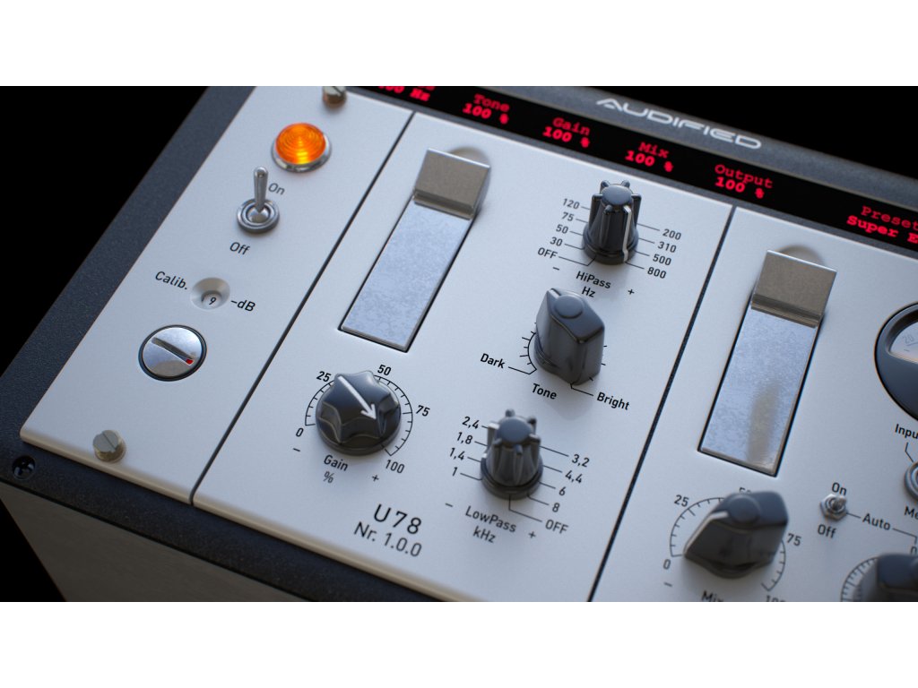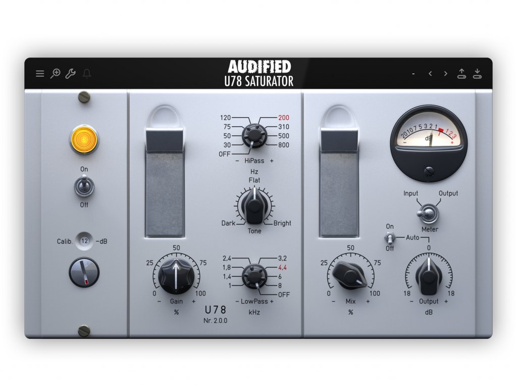 ovládá jedinečný filtr U78 Saturatoru. Nižší úrovně produkují hladkou sametovou barvu nízkých frekvernčích pásem, naopak vyšší nastavení vytváří jasnější, jiskřivé zvuky.