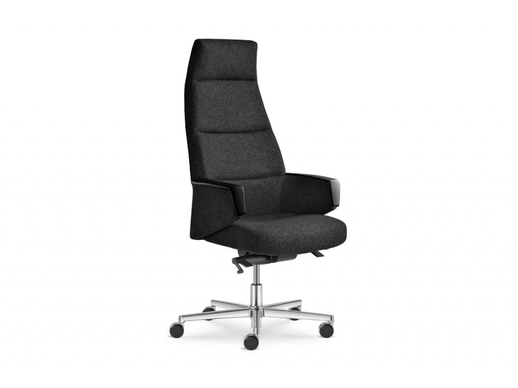 Reprezentativní pohodlná luxusní židle s vysokým opěradlem, čaloněnými područkami s koženými návleky. Je určena pro dlouhodobé pohodlné sedění ve studiu, v multimediálním pracovišti, v kanceláři nebo v domácnosti.