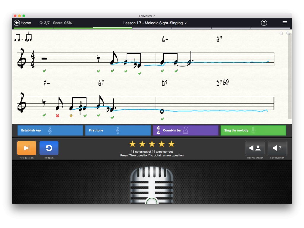 EarMaster 7 obsahuje více než 2500 interaktivních cvičení, zahrnujících základní aspekty pro cvičení hudebního sluchu, zpěv z listu a cvičení rytmu:
