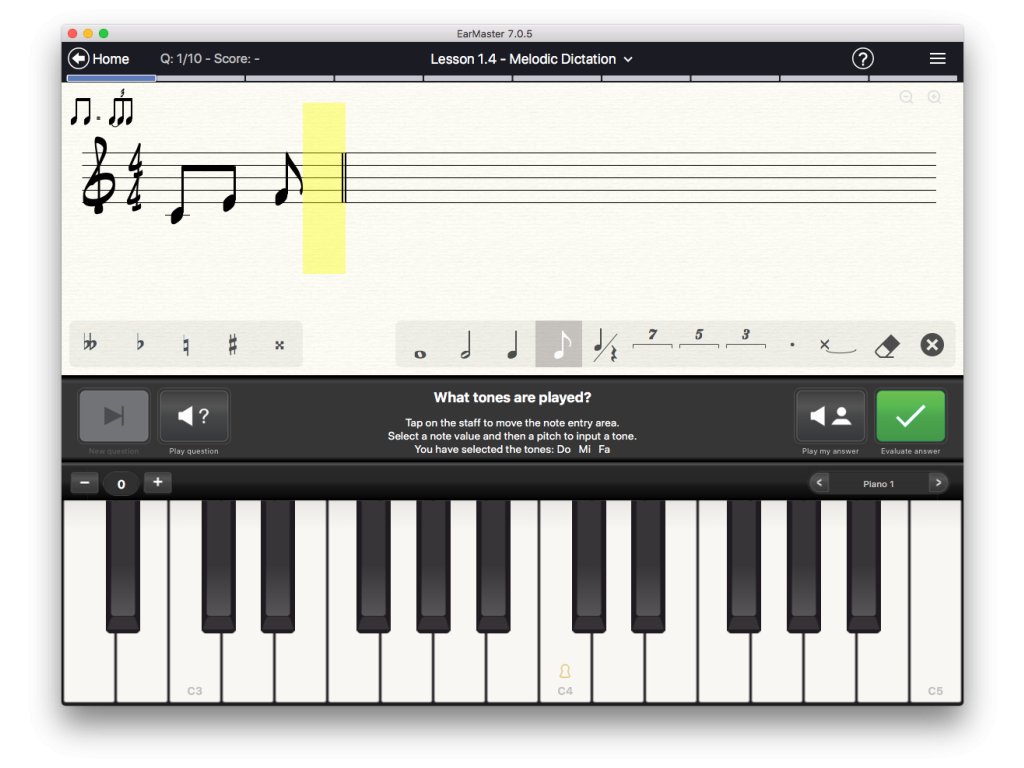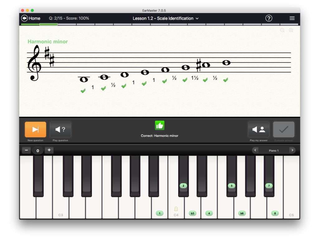 - Připojte MIDI nástroj a hrajte své odpovědi.
