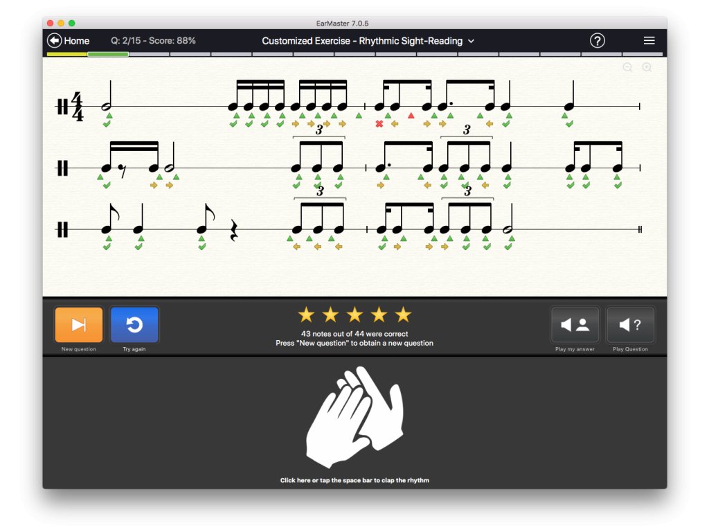 - Rytmická cvičení. Vyklepejte rytmus v reálném čase a získáte zpětnou kontrolu o vaší přesnosti.