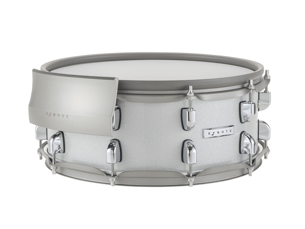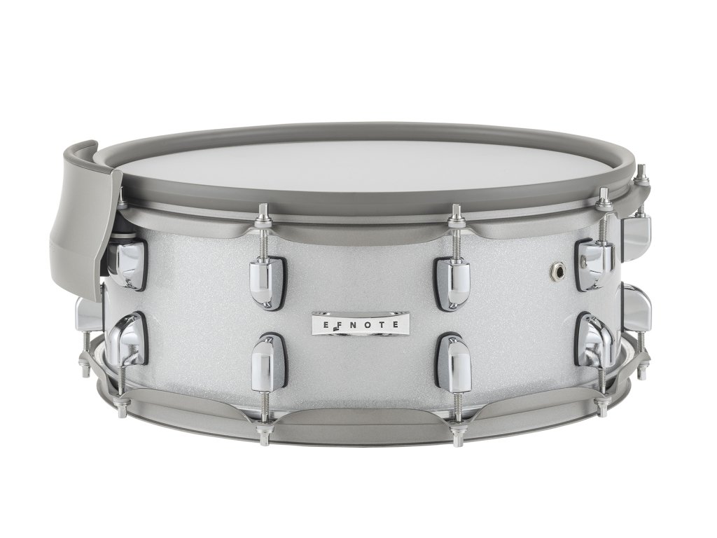 Inovativní elektronický snare pad s realistickým pocitem ze hry a precizním snímáním. Třízónové provedení (Head, Rim, Side-Rim) s oddělenou Rim Click zónou umožňuje věrné provedení technik včetně cross-stick. Systém čtyř bočních snímačů eliminuje hot-spot a zajišťuje rovnoměrnou citlivost po celé ploše. 6vrstvý březový korpus s povrchovou úpravou – bílá perleť a dvouvrstvé síťované blány poskytují přirozený odraz a tichý provoz. Kompatibilita s moduly Roland, Pearl, EFNOTE i dalšími díky dvojici TRS výstupů. Chromované ráfky s gumovým potahem snižují hluk při úderech. Vhodný pro rozšíření e-souprav i pro custom sestavy. Povrchová úprava – bílá perleť.