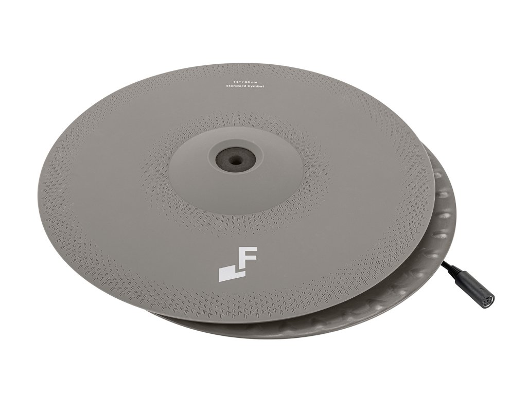 Pady Hi-Hat činelů (pár), velký rozměr 14", třízónové snímání, optická multi-senzorová technologie, 360° snímání a choke, Tru-motion, realistická simulace hmotnosti, jemně gravírovaný povrch, 6-pinový konektor, barva Warm gray