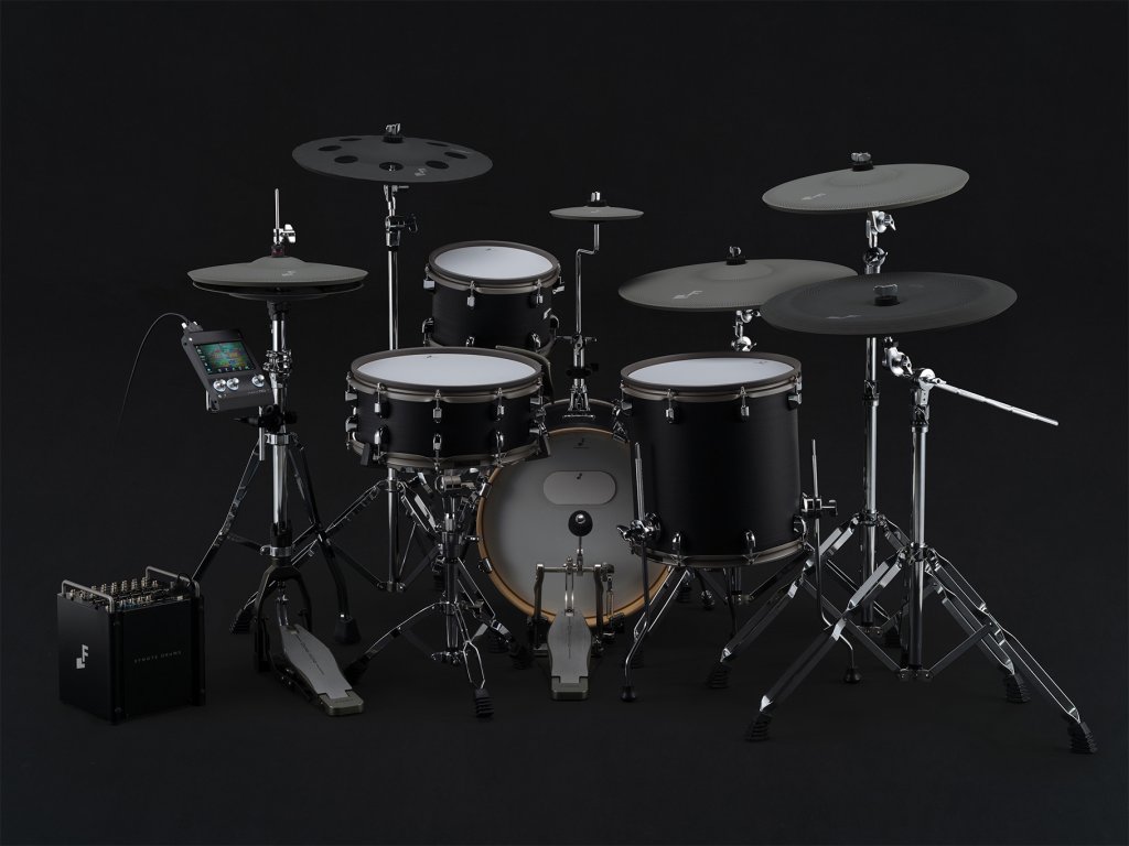 Elektronická bicí souprava s modulem, ELISE Trigger Processor 2.0, barevný dotykový displej, samostatný stagebox s 12 XLR výstupy, 23 továrních a 20 uživatelských sad, uživatelské samply (WAV), 188 zvuků, 12kanálový mix, EQ, kompresor, USB audio 2 In/12 Out, USB MIDI, Bluetooth, možnost připojit 15 padů, bytelné provedení, povrchová úprava Black Oak (černý dub)