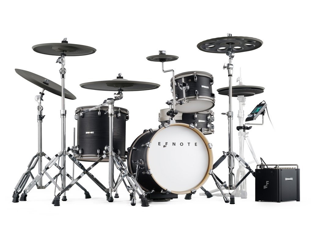 Profesionální elektronická bicí sada s pokročilým modulem EFD-PRO a samostatným stageboxem poskytuje špičkové snímání úderů díky technologii ELISE Trigger Processor 2.0. Modul umožňuje import vlastních samplů (User Tone), detailní editaci sad a nabízí 23 továrních a 20 uživatelských presetů. Stagebox zajišťuje až 12 symetrických XLR výstupů a snadné propojení s mixážním pultem, včetně možnosti USB audio rozhraní (2 In/12 Out) a Bluetooth MIDI/audio. Sada obsahuje rozsáhlou kolekci padů s realistickým pocitem ze hry a je kompatibilní s aplikací EFNOTE Tools App pro vzdálené ovládání přes chytrá zařízení. Povrchová úprava Black Oak (černý dub)