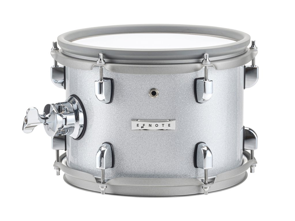 Realistický pad rack tomu Efnote s průměrem 10" je vhodný pro flexibilní sestavy i rozšíření tradiční soupravy. Šestivrstvý březový korpus poskytuje přirozenou rezonanci, dvouvrstvá síťka zajišťuje tichý a přesný odraz. Multi-senzorová technologie Tru-Motion™ umožňuje dvouzónové snímání úderů na blánu i ráfek. Barevný gumový ráfek chrání paličky a zvyšuje komfort při hře na rim. Pad je kompatibilní s ramenními držáky (Rod Mount) o průměru 9,5–12 mm, což zaručuje snadné uchycení do běžných rackových i akustických systémů. Povrchová úprava White Sparkle – bílý třpyt podtrhuje moderní vzhled a odolnost.