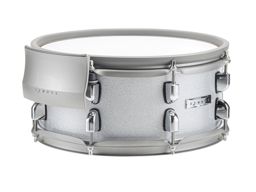 Realistický pad virblu Efnote s průměrem 12" přináší autentický pocit ze hry a maximální citlivost pro všechny herní techniky. Šestivrstvý březový korpus zajišťuje přirozenou rezonanci, dvouvrstvá síťka poskytuje tichý a realistický odraz. Multi-senzorová technologie Tru-Motion™ umožňuje třízónové snímání: údery na blánu, ráfek a boční ráfek (Side-Rim). Funkce Side-Rim přináší naprosto věrnou odezvu na cross-stick i rimshot bez přepínání režimů. Barevný gumový ráfek chrání paličky a zvyšuje komfort hry. Dva TRS výstupy umožňují flexibilní připojení ke zvukovým modulům, nejlepší nuance i dynamiku získáte s modulem Efnote. Povrchová úprava White Sparkle – bílý třpyt zvýrazňuje moderní a profesionální design.