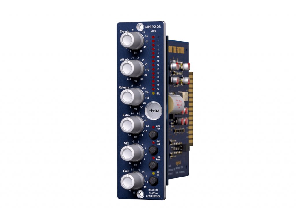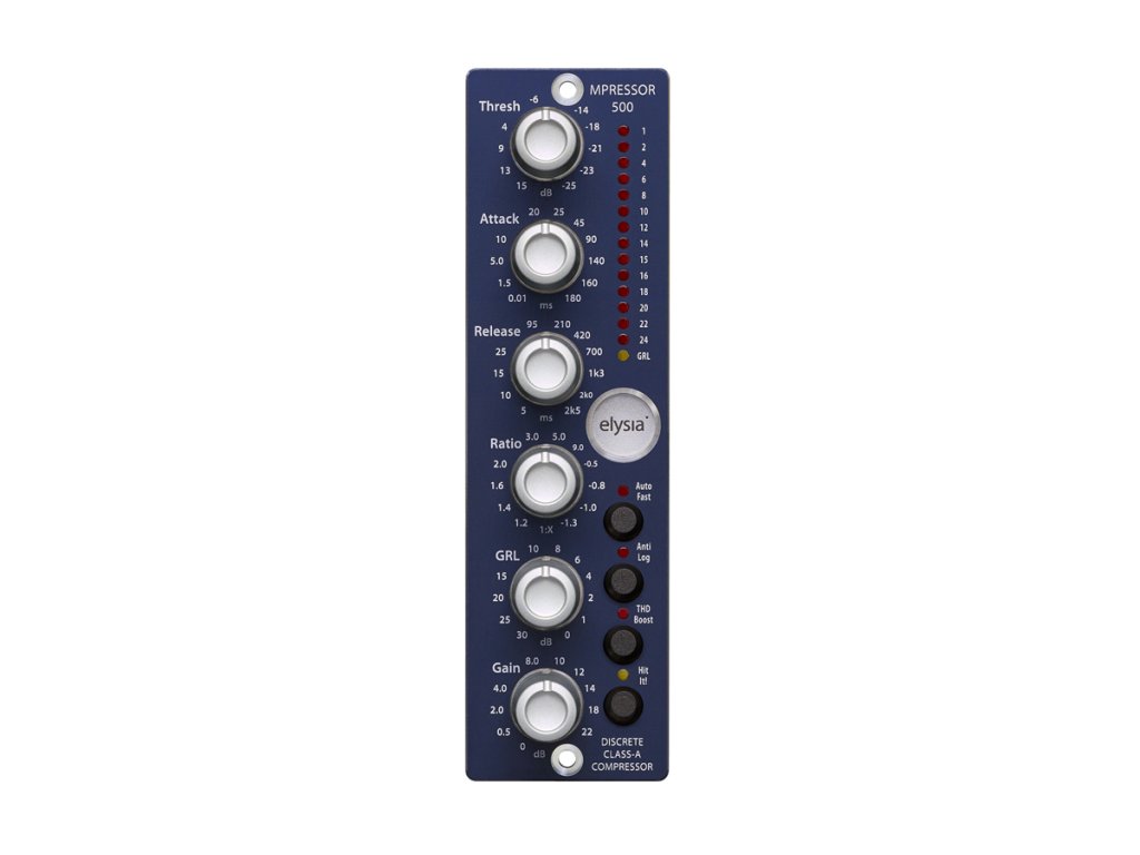 jedno kanálový kompresor řady 500 s Auto Fast Attack, Anti Log obvodem, Gain Reduction limitérem a THD (total harmonic distortion) Boost Harmonic Enhancement