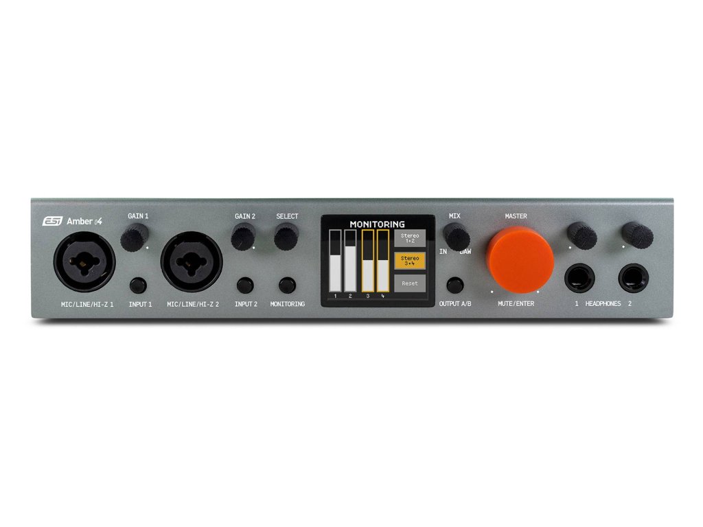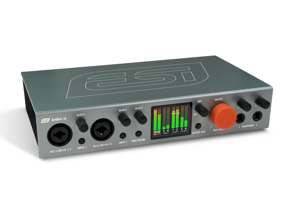 Amber i4 je zatím nejvybavenější zvukovou kartou modelové řady Amber německé značky ESI. Má bohatou konektivitu, přehledný displej a MIDI rozhraní na DIN. Řada Amber je vybavena novým designem s jantarově zbarveným ovladačem hlasitosti. Celkem 4 analogové vstupy - dva nabízejí připojení mikrofonu, linky i nástroje, další dva symetrické umožňují připojit syntezátory, zvukové moduly nebo procesory. Phantomové napájení +48 V u prvních dvou vstupů umožňuje připojení i kondenzátorových mikrofonů. 4 linkové výstupy nabízejí poslech dvou párů aktivních monitorů s regulací z předního panelu, nebo začlenění analogových procesorů do zvukového řetězce.