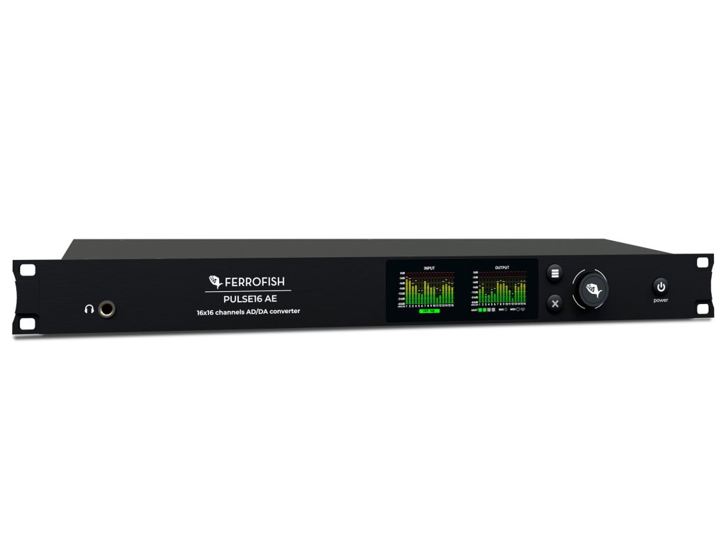 Ferrofish Pulse16 AE je profesionální AD/DA převodník s 16 symetrickými analogovými vstupy a výstupy na konektorech TRS 6,3 mm (velký jack) a rozšířenou ADAT konektivitou až 32×32 kanálů. Nabízí špičkovou kvalitu převodu díky převodníkům ESS, vizuální monitoring na displeji s vysokým rozlišením a možnost vzdálené správy přes USB-C nebo MIDI. Díky kompaktnímu rackovému 1HU provedení a slotu pro DSP kartu je ideální pro studiové i live nasazení.