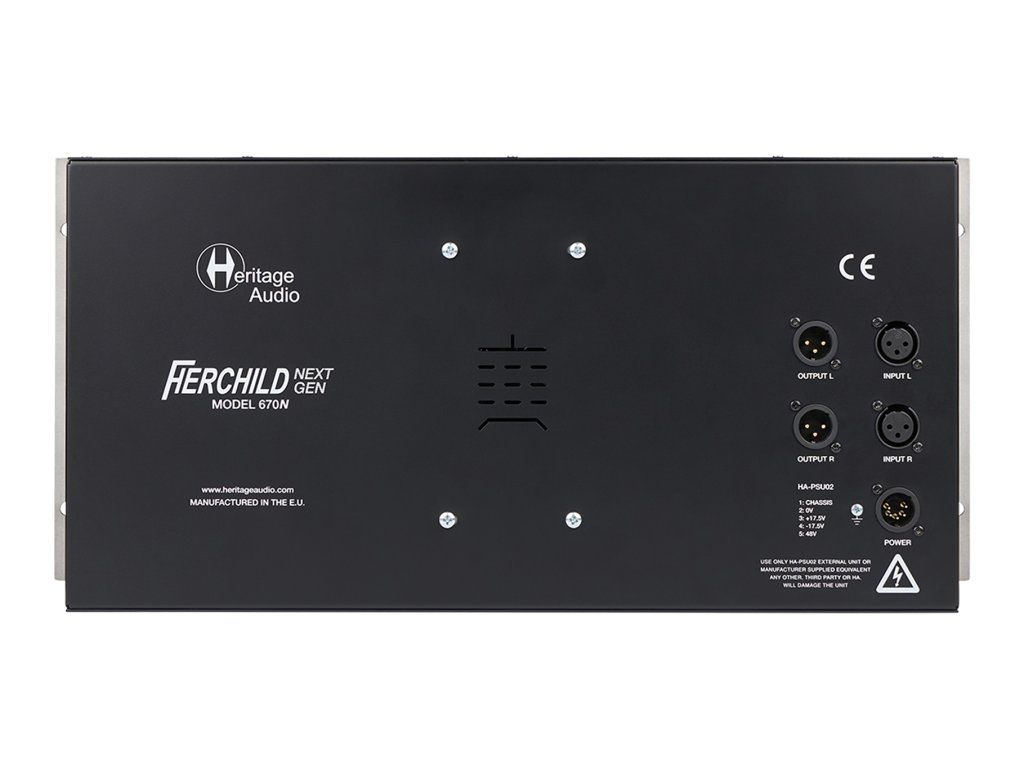 Herchild 670N disponuje symetrickými XLR vstupy a výstupy s pozlacenými konektory a je napájen externím zdrojem HA-PSU02. Masivní 5U rackmount šasi zajišťuje odolnost i snadnou integraci do jakéhokoliv studiového racku.