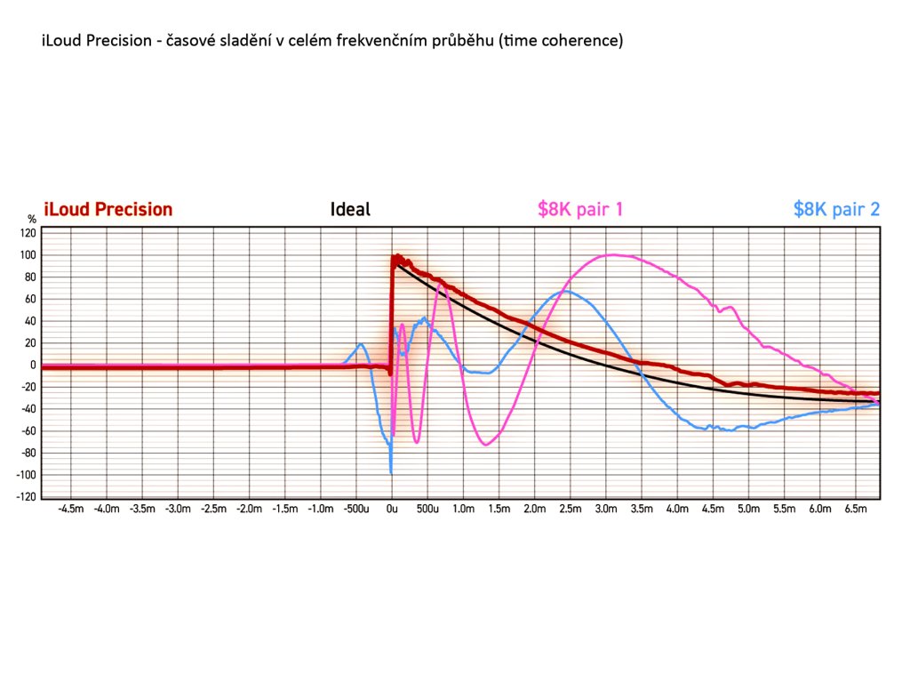 iLoud Precision nastavuje nový standard pro časovou koherenci nebo přesné načasování ve všech částech frekvenčního spektra. iLoud Precision nabízí nejvyšší úroveň časové přesnosti beze ztráty frekvenční odezvy pro dosažení téměř ideálního podání. Přesné časové sladění nabízí neuvěřitelnou přesnost přechodových jevů (transientů) a frekvenční vyváženost. Tak i eliminuje únavu uší, která často vzniká při delším poslechu na většině ostatních monitorů.