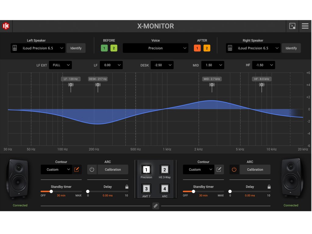 k monitorům iLoud Precision se dodává X-MONITOR - nově vyvinutá pokročilá ovládací aplikace pro Mac a Windows. Ta pomáhá s kalibrací ARC a umožňuje rozšířené nastavení akustického prostoru a úpravy pro doladění iLoud Precision podle vašeho vkusu. Současně nabízí pohodlný vzdálený přístup k nastavení na zadním panelu monitorů. Software je plug-n-play přes jednoduché USB připojení bez nutnosti speciálního nastavení v počítači.