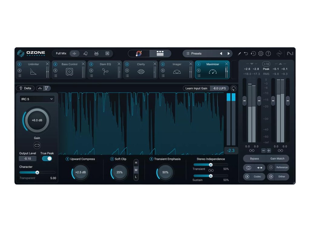 Ozone 12 v edici Advanced je kompletní masteringový balík s nejširší dostupnou funkcionalitou. Nabízí přístup ke všem modulům iZotope Ozone s plnou flexibilitou jejich použití jako samostatné pluginy v DAW. Tato verze je určena pro profesionální masteringové inženýry, zvukové designéry a studia.