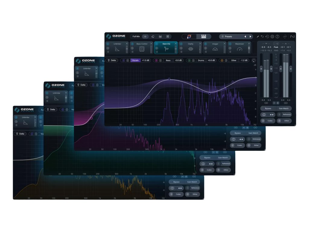 Verze Ozone 12 Advanced obsahuje veškeré funkce nižších verzí a navíc exkluzivní moduly a technologie. Umožňuje detailní řízení spektrální rovnováhy, dynamiky a prostorového obrazu. Všechny moduly lze používat jako samostatné pluginy, což umožňuje maximální flexibilitu při zpracování signálu.