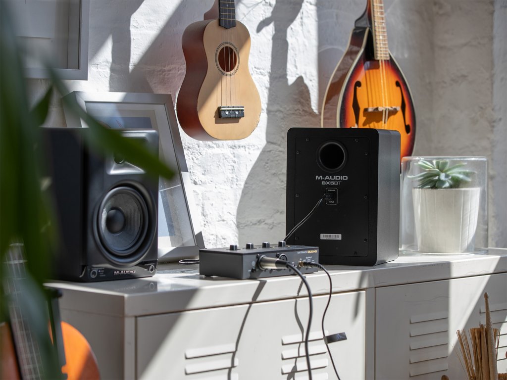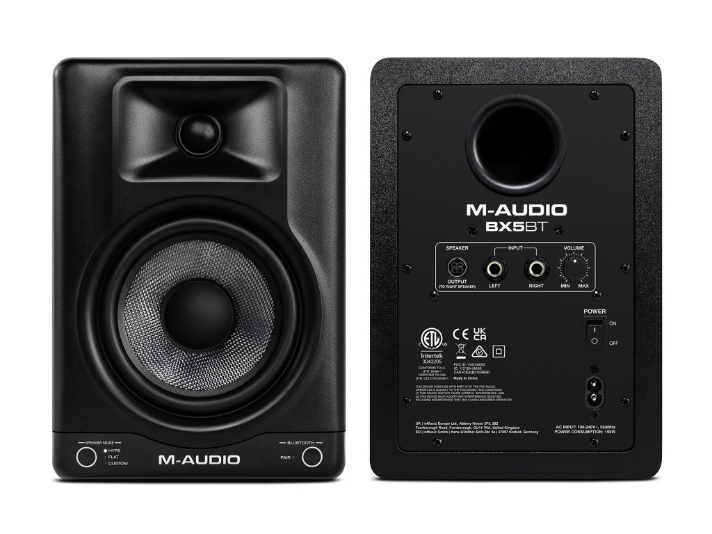 Kompaktní pár aktivních studiových monitorů M-Audio BX5 BT spojuje profesionální zvuk a moderní konektivitu s možností bezdrátového přenosu přes Bluetooth 5.0 a precizním DSP řízením. Nabízí vysokou přesnost pro mix, gaming i multimediální produkci v malých prostorách, přičemž aplikace M-Audio Studio Control umožňuje detailní nastavení EQ a uložení presetů. Zesilovač pro oba monitory je integrován v aktivním boxu.