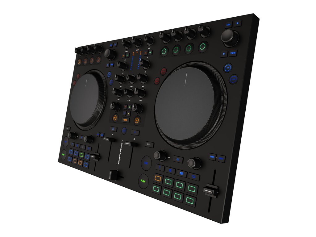 DJ kontroler s integrovanou zvukovou kartou, 2deckové uspořádání, citlivé jog disky, 16 RGB padů, sekce Mixer FX, stem mix, Pattern Player, přiložený software Traktor Pro 4, připojení USB-C, černé provedení