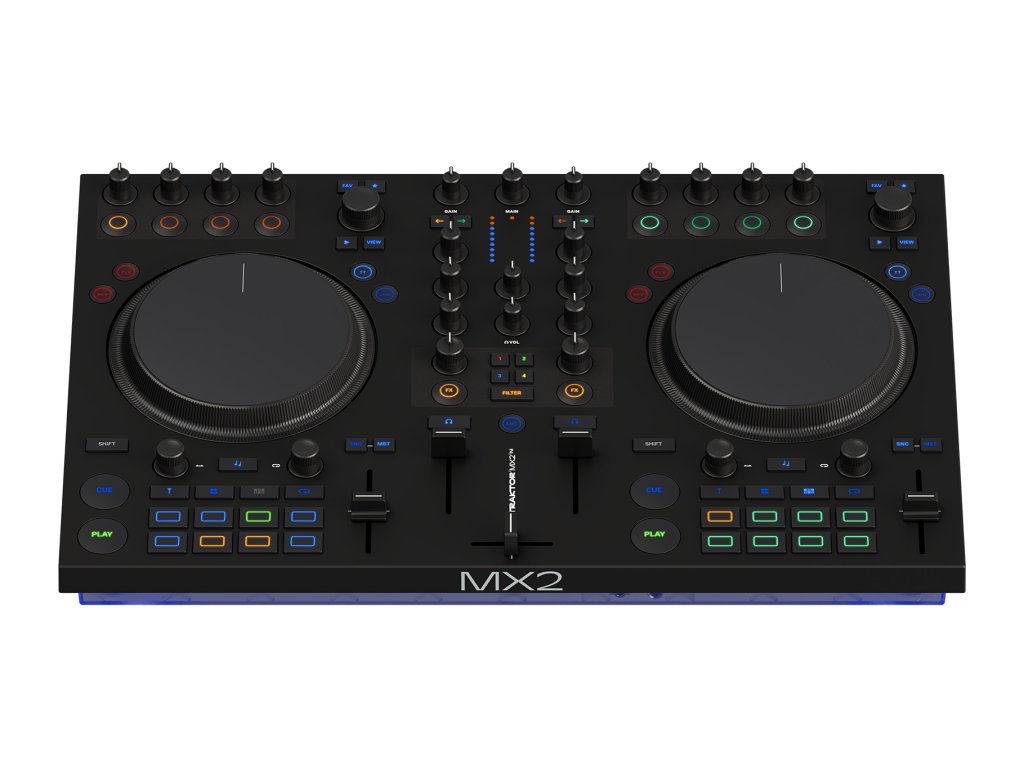 Součástí balení je plná verze Traktor Pro 4, profesionálního DJ softwaru s možností mixovat až čtyři decky, využívat stem separaci, efekty, pattern sekvencer a nahrávání setů. MX2 nabízí hlubokou integraci s Traktorem a umožňuje ovládání všech klíčových funkcí z hardware.