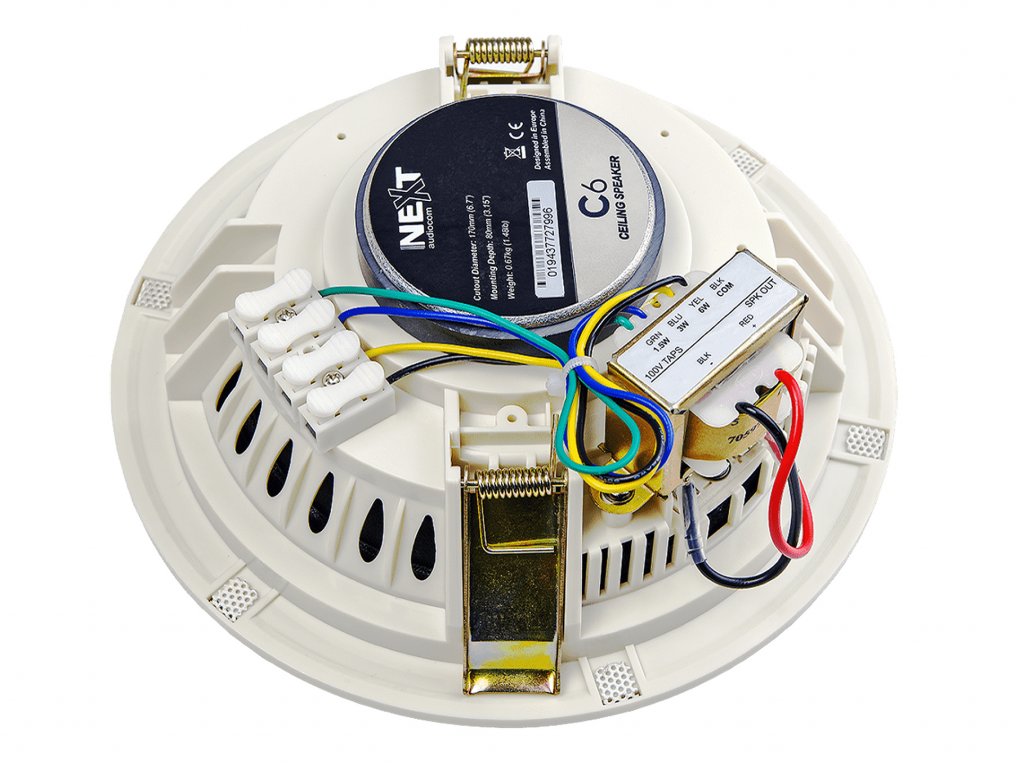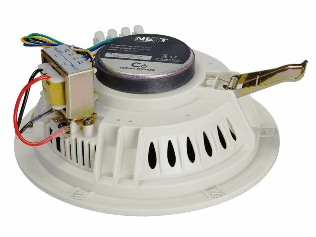 je 6,5“ stropní reproduktor s odnímatelným logem. Mřížku lze snadno nalakovat tak, aby ladila nebo kontrastovala s vaším stropem. Upevňovací systém je z pružinového mechanismu bez šroubů pro jednoduchou a snadnou instalaci. Integrovaný transformátor umožňuje použít reproduktor pro 100 V instalace.
