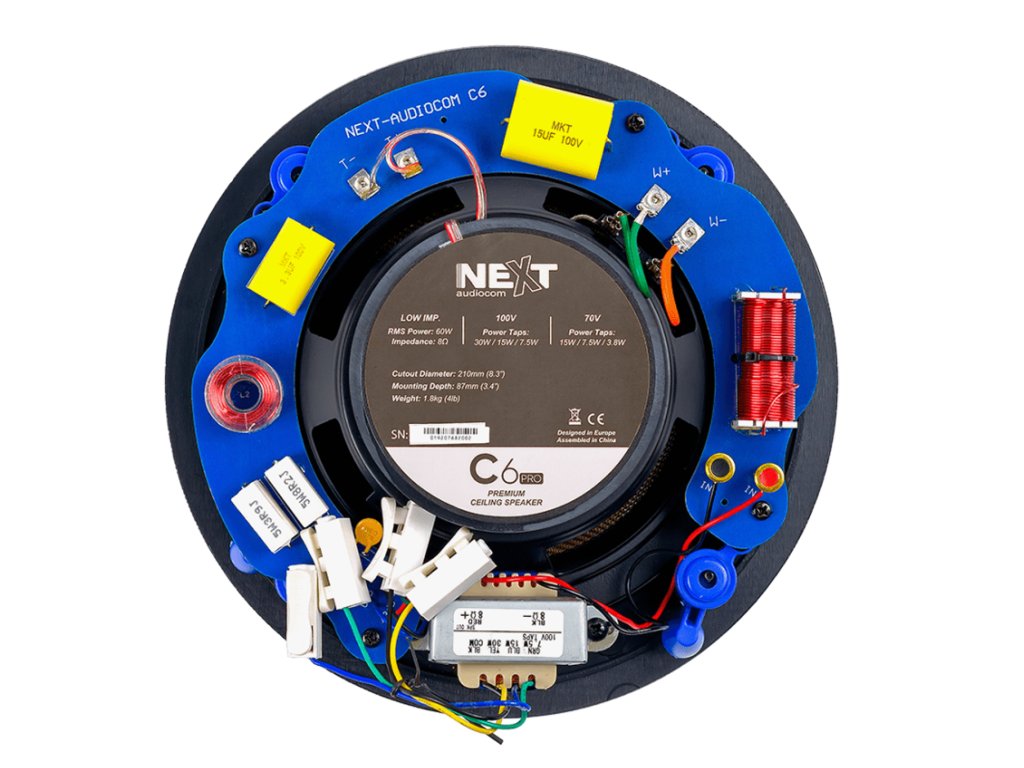 je 6,5“ prémiový stropní reproduktor s magnetickou nízkoprofilovou mřížkou a odnímatelným logem. Reproduktor lze snadno nalakovat tak, aby ladil nebo kontrastoval se stropem. Upevňovací systém umožňuje jednoduchou instalaci do stropu nebo stěny a nevyžaduje vysoké technické dovednosti. Výškový reproduktor můžete nastavit tak, aby zvuk pokryl přesně ta místa, která potřebujete. Integrovaný transformátor umožňuje použít reproduktor pro 100 V rozvod nebo jako nízkoimpedanční reproduktor 8Ω. Integrovaný ekvalizér umožňuje 3 různé úrovně nastavení vysokých frekvencí (Dampened Room, Normal Room, Bright Room).
