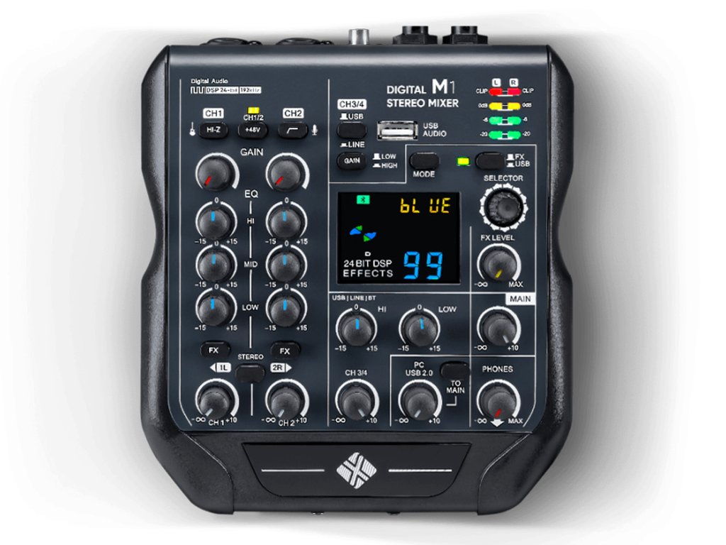 M1 je velmi kompaktní a lehký čtyřkanálový digitální stereofonní mixážní pult s Bluetooth pro všestranné použití. Současně slouží i jako vysoce kvalitní USB zvukové rozhraní pro počítače PC i Mac nebo smart zařízení.