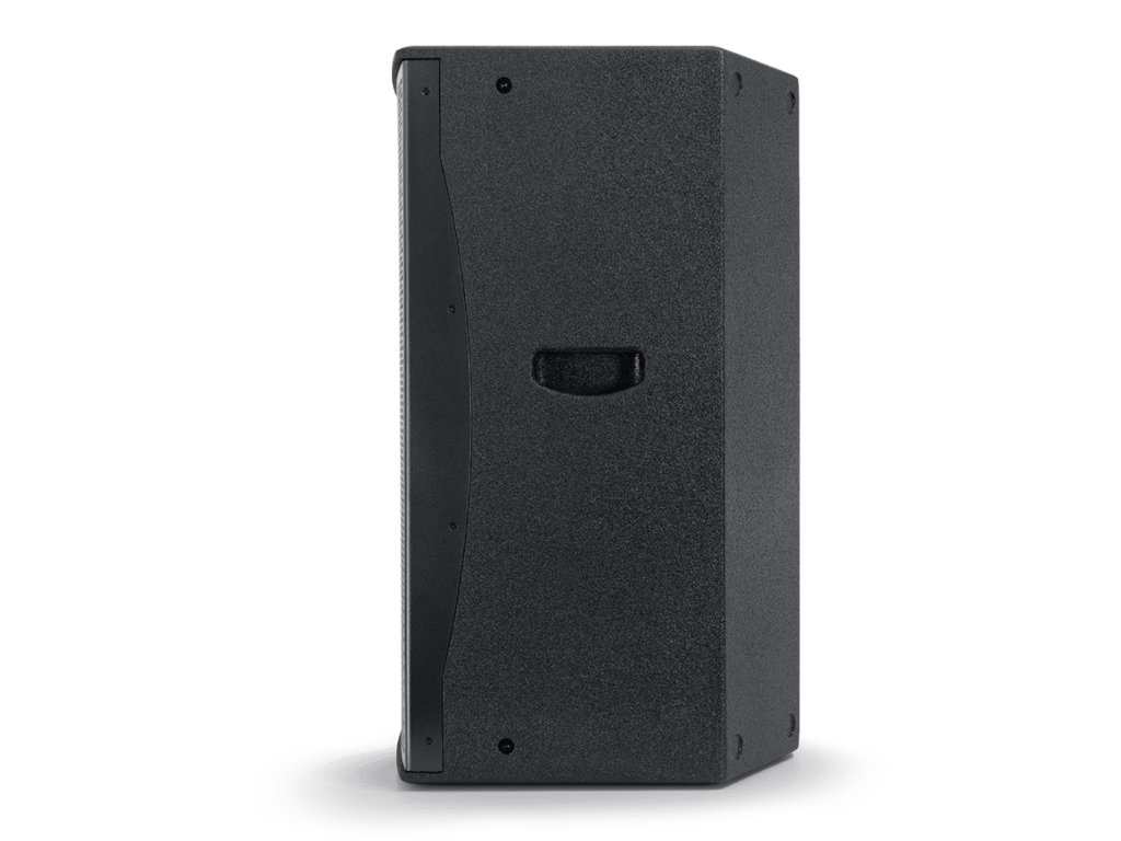 - Zkosení zadních bočních hran reproboxu umožňuje jeho použití i jako pódiového monitoru pro hudebníky.
