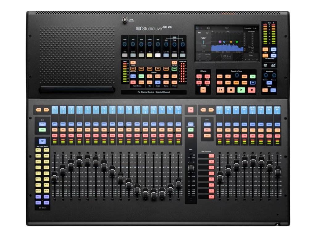 StudioLive SE24 je kompaktní digitální mixpult určený pro komplexní ozvučovací systémy, studiové sestavy i síťová řešení. Nabízí pokročilé směrování, integrované efekty a připojení k AVB i Dante sítím.