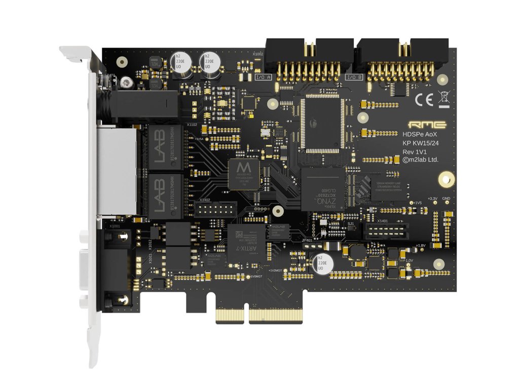 Karty zvukového rozhraní HDSPe AoX PCIe x4 kombinují dva síťové porty Dante se sluchátkovým výstupem, AES3, MIDI a interními piny pro připojení volitelných modulů s až 4x MADI in/out . Ať už jsou tyto karty použity v rozšiřujícím šasi Thunderbolt™ nebo zabudovány přímo do DAW počítače či zvukových procesorů, odesílají a přijímají až 256 zvukových kanálů in/out a poskytují četné možnosti mixování a směrování.