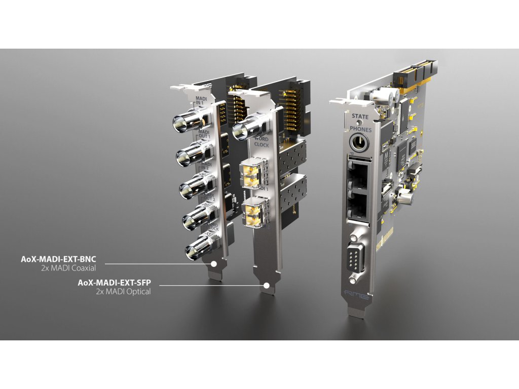Rozhraní PCIe x4, které zabírá pouze jeden slot, vysílá a přijímá až 256 kanálů in/out síťových zvukových signálů na dvou samostatných konektorech RJ45. Síťové zvukové kanály lze částečně nahradit signály MADI přidáním až dvou volitelných duálních optických nebo duálních koaxiálních rozšiřujících karet. Poprvé je tedy možné integrovat čtyři vstupní signály MADI, čtyři výstupní signály MADI plus až 256 síťových audio kanálů v každém směru v rámci jediného audio rozhraní - v systémech MacOS a Windows.