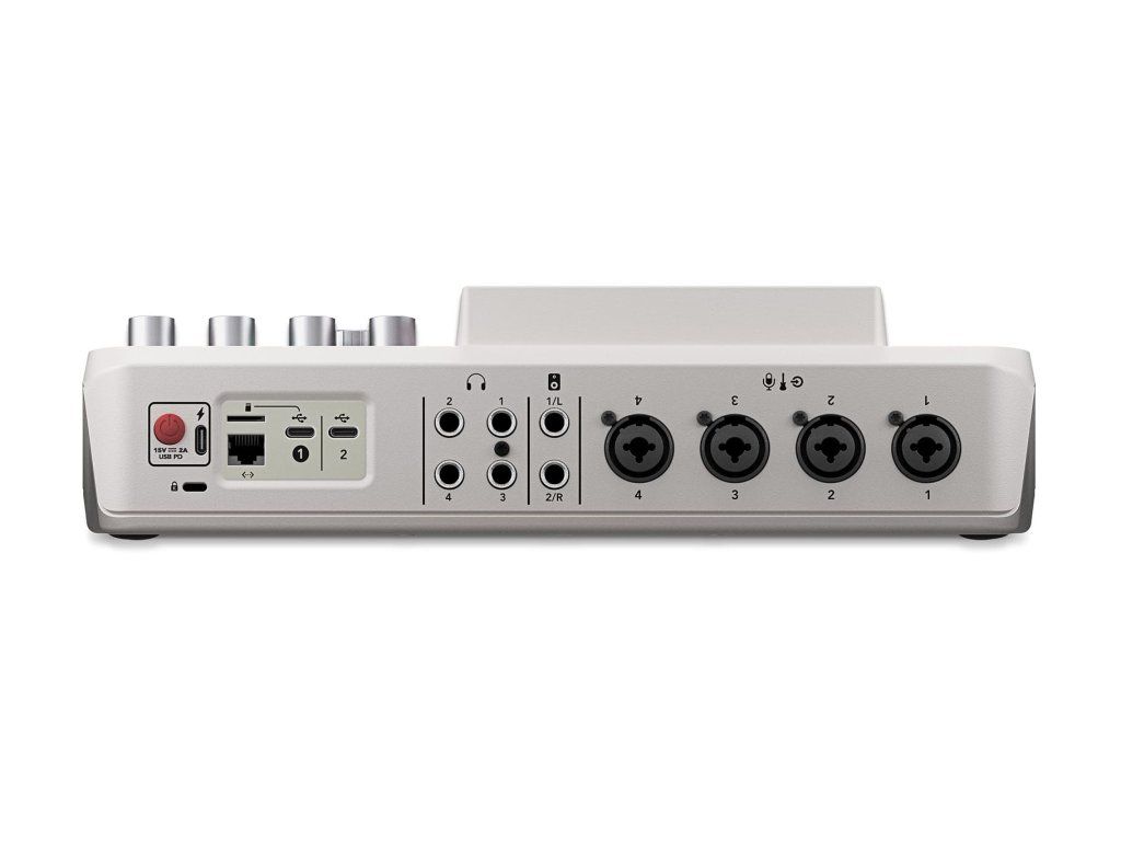 Podcastové produkční studio, 4x combo XLR/TRS In, TRRS (malý jack), Bluetooth, Wi-Fi, duální USB-C, microSD slot, procesování Aphex na vstupech, sluchátkový distributor, barva bílá