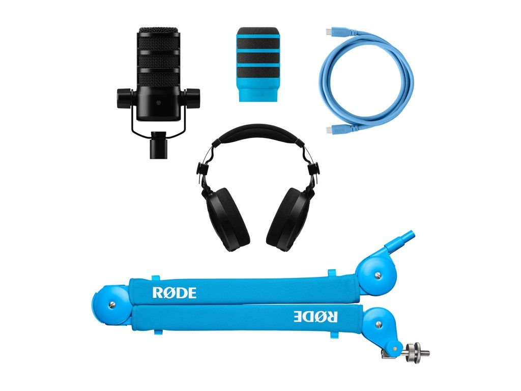USB produkční bundle, 1x RØDE PSA1+ (Blue), 1x RØDE PodMic USB, 1x RØDE NTH-100, 1x RØDE USB CABLE 3m (Blue), 1x RØDE WS14 (Blue), vhodný pro podcasting a stream, pro domácí i profi studia, barevná varianta: modrá