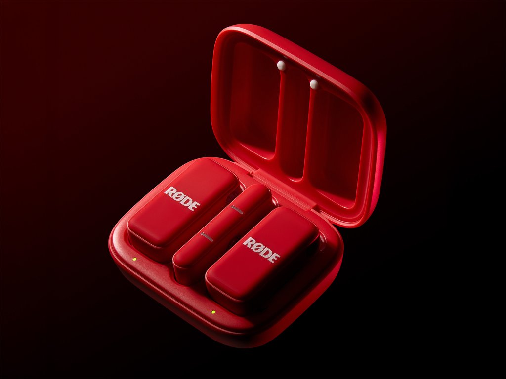 Kompaktní dvoukanálová bezdrátová sada 2x vysílač + 1x duální přijímač, pro nahrávání zvuku do smartphonu pomocí USB-C, digitální přenos, dosah 100 m, interní mikrofony na vysílačích, včetně dobíjecího docku Charge Case, protivětrných ochran, magnetických klipů a nabíjecího USB-C kabelu, podpora iOS i Android, červené provedení