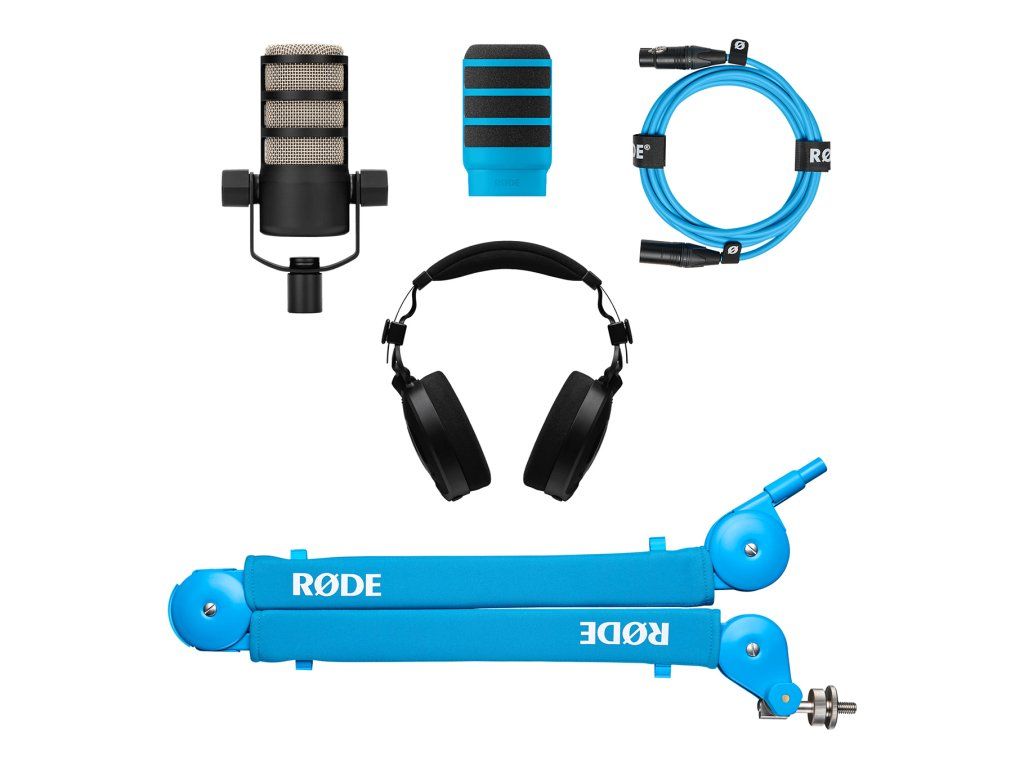 Produkční bundle, 1x RØDE PSA1+ (Blue), 1x RØDE PodMic, 1x RØDE NTH-100, 1x RØDE XLR CABLE-6m blue, 1x RØDE WS14 (Blue), vhodný pro podcasting a stream, pro domácí i profi studia, barevná varianta: modrá