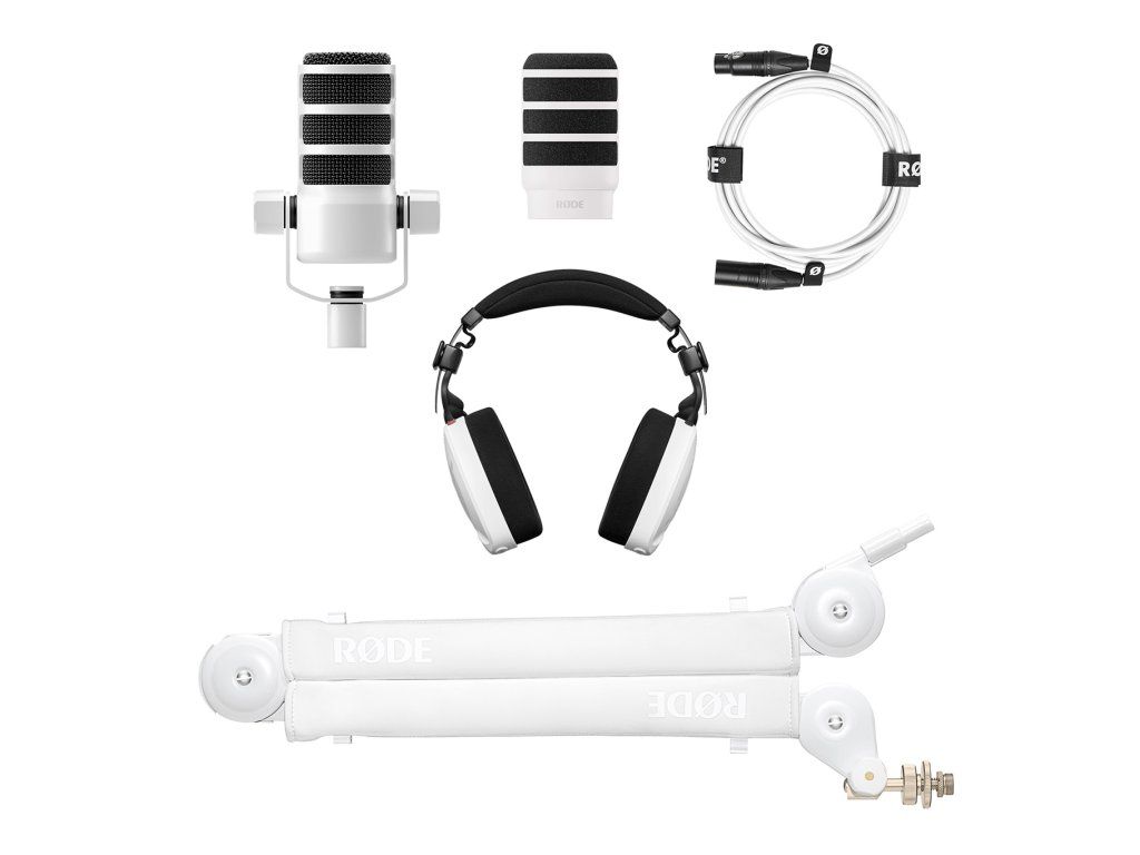Produkční bundle, 1x RØDE PSA1+ (White), 1x RØDE PodMic USB (White), 1x RØDE NTH-100 (White), 1x RØDE XLR CABLE-6m white, 1x RØDE WS14 (White), vhodný pro podcasting a stream, pro domácí i profi studia, barevná varianta: bílá