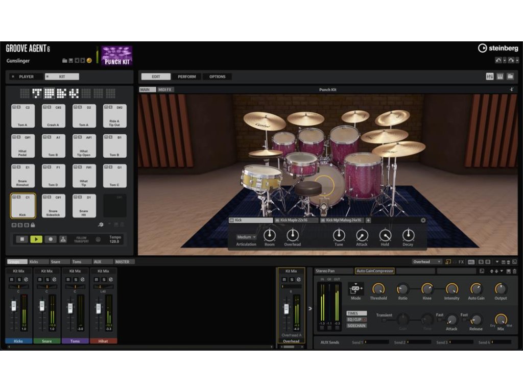 Groove Agent 6 je komplexní virtuální nástroj pro tvorbu bicích, určený jak pro profesionální producenty, tak pro tvůrce elektronické hudby, kteří požadují vysokou úroveň realismu i kreativity. Nabízí rozsáhlé možnosti tvorby rytmů, editace patternů i vrstvení samplů.