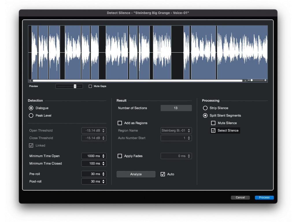 Nové Event Volume Curves a vylepšený Range Tool umožňují rychlejší a flexibilnější editaci. Adaptive Background Attenuation zajišťuje čistotu dialogu automatickým potlačením okolních zvuků. MixConsole lze nyní zobrazit v Lower Zone s možností přeuspořádání stop.