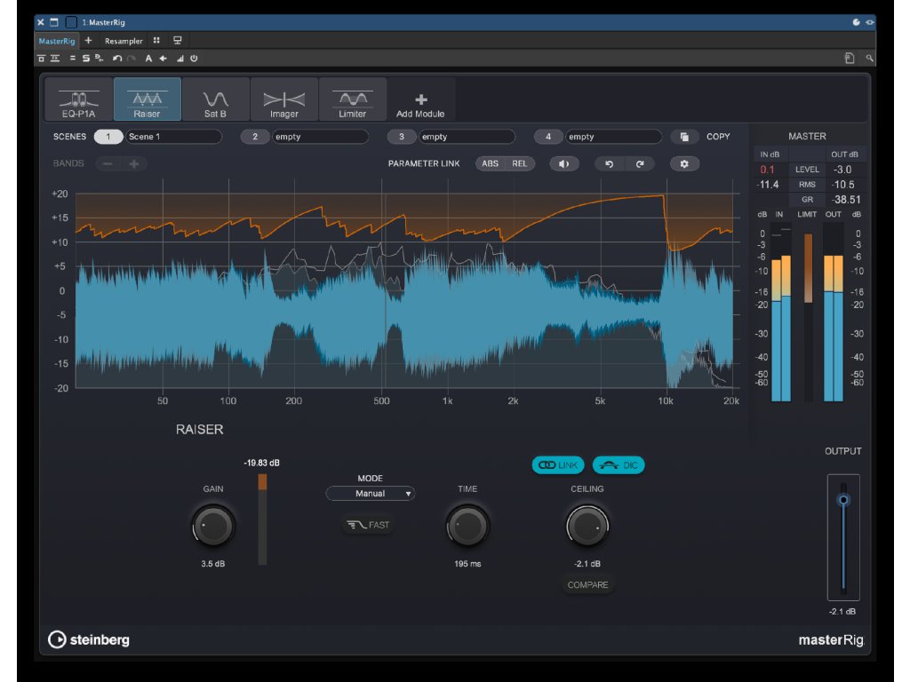 - MasterRig (Elements): Pěti-modulová verze masteringového procesoru (EQ, Compressor, Limiter, Saturator, Imager).