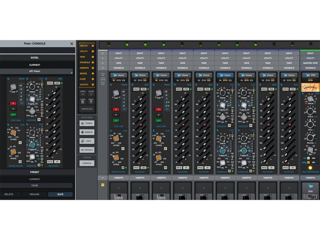 - obsahuje plug-iny klíčových procesorů API včetně channel stripu konzole API Vision
