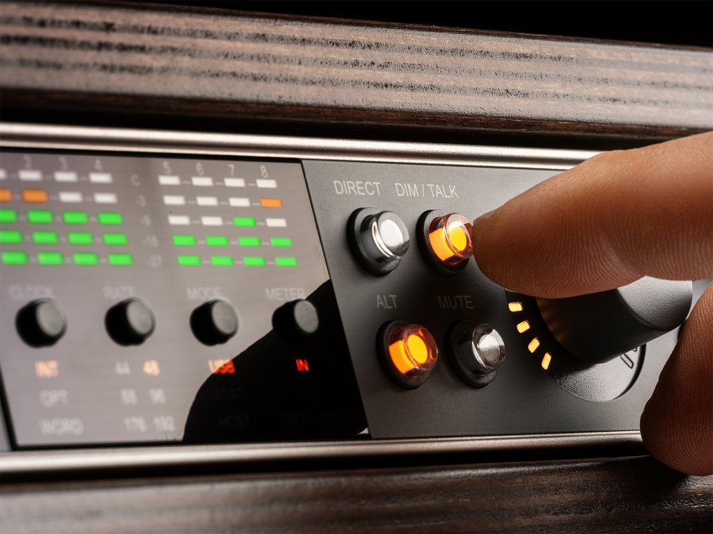 Na čelním panelu najdete i talkbackový mikrofon, který je propojený s Talkback systémem zvukové karty. Pro pokyny kolegům už tak nemusíte obsadit jeden mikrofonní vstup a připravit se tak o plnou konektivitu.