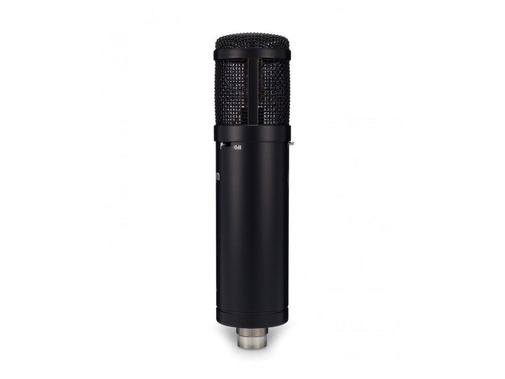 Studiový mikrofon, kondenzátorový velkomembránový, pro zpěv i nástroje, kapsle typu ´47, Pad (útlum), Hi-Pass filtr, tři směrové charakteristiky, vysoce kvalitní součástky, XLR konektor s pozlacenými piny, odpružený i pevný držák, barva černá